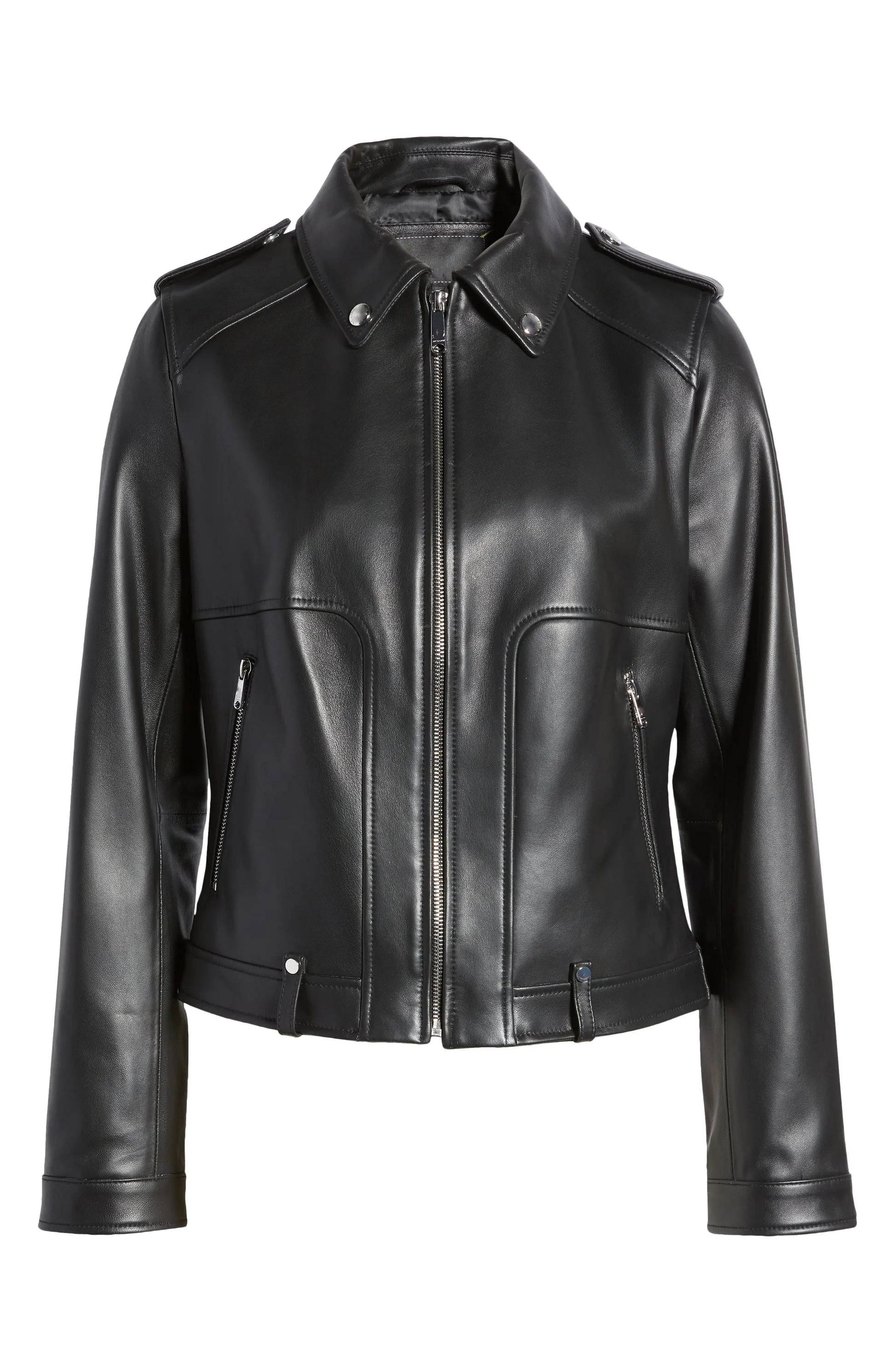 Rev up the weekend in this biker-chic jacket made from buttery-soft genuine leather.