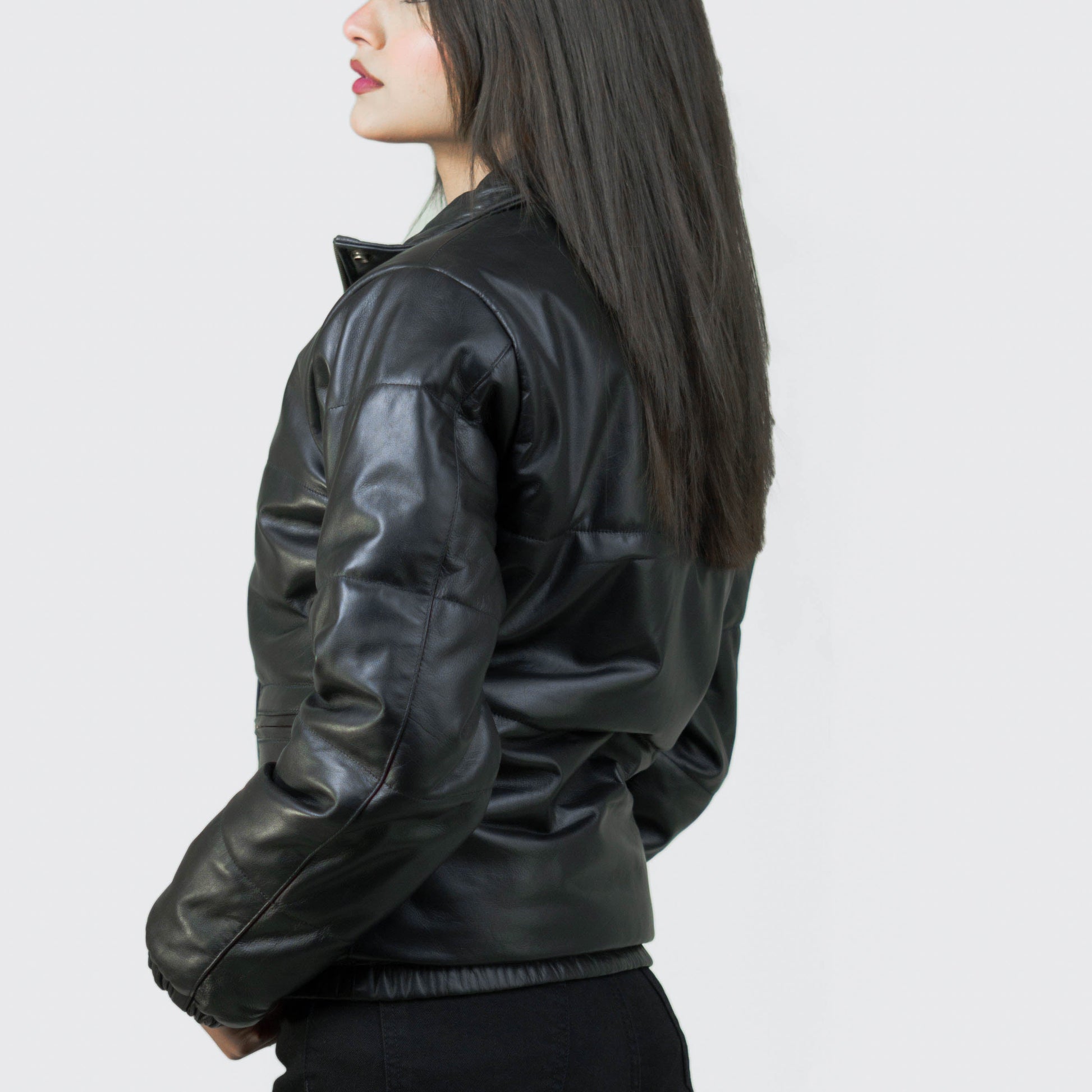 Luxurious Puffer Leather Jacket w/ Stand Collar - Renée