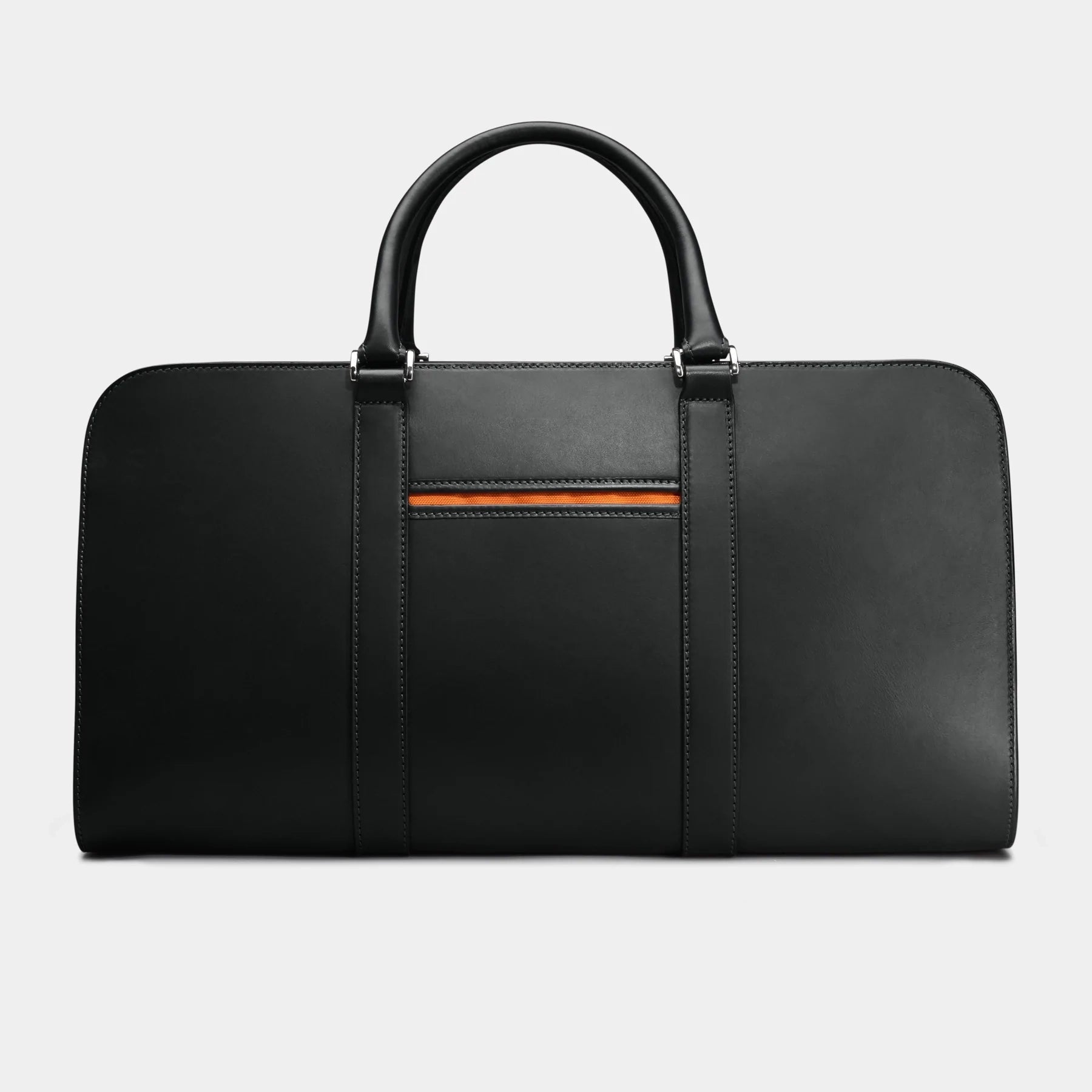 Black Designer Leather Luggage Bag w/ Orange Lining - Anaé